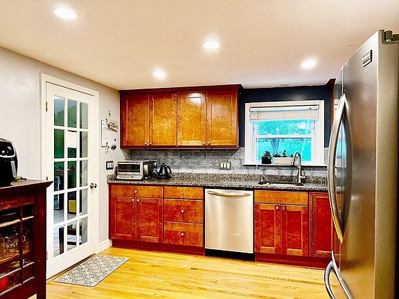 Spacious four bedroom, two full bath Cape in a desirable neighborhood conveniently located to highway and shopping and minutes to downtown and Hopkinton. This home features a first floor primary bedroom, full bath, second bedroom or home office, large open kitchen with dining area, fireplace/wood stove in living room and den with slider to deck and backyard. Second floor has two good size bedrooms and large full bath. Hardwood floors throughout and tiled, updated baths. Heat is natural gas forced air and air conditioned by 4 split systems in primary bedroom, 2nd floor bedroom, living room and den. Nice, flat backyard with storage shed with electricity. Move right in and make this home your own!
