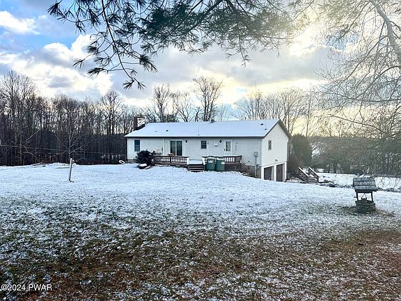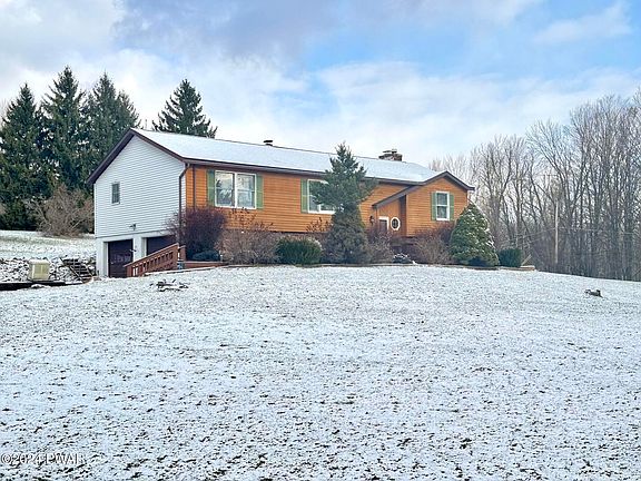 Charming country home nestled on 2+ acres located in minutes from Honesdale's historic district. Featuring bright and open living space with a cozy wood-burning fireplace, the main level also offers three bedrooms, including the primary suite with its own full bath with soaking tub and separate shower. The kitchen boasts newer stainless steel appliances, adding a modern touch. The sprawling deck off the dining room & kitchen offers stunning views of the surrounding countryside. On the lower level, you'll find the finished family room with propane stove and a two-car garage, providing ample space for gathering and storage. With new lower level flooring and a new roof installed in 2022, the bigs jobs are complete. Enjoy the peace and quiet of country living while being so close to the convenience of town. Don't miss out on this incredible opportunity to own a slice of countryside charm in a fantastic location!