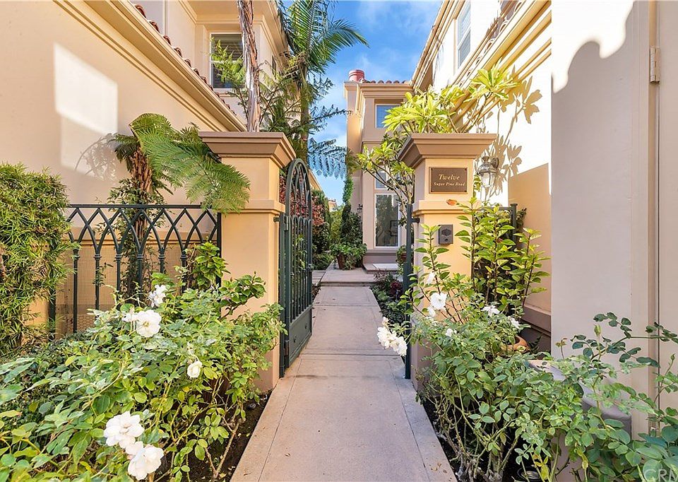 12 Sugar Pine is a beautiful and private, sunwashed villa nestled on the front row of Santa Lucia in exclusive Newport Coast. It's surrounded by a beautiful garden of flowers, lemon trees, lawn, bbq pavilion and patio with a glass fence to fully unwind and take in the unobstructed canyon and ocean views. The interior has sweeping high ceilings and windows that fill the house with light throughout the day. This home exudes a quiet confidence and casual elegance making it the perfect place to relax or work from home. Three of its four ensuite bedrooms are located on the second level. The first level bedroom is currently used as a library/home office with built-in cabinetry for storage. The ocean and canyon view master suite has a fireplace, built-in cabinets and a large sitting room. There are two additional fireplaces on the first floor, in the formal living room and in the great room. This open floorplan flows effortlessly from the foyer through the living room, dining room, great room and informal dining area to the gourmet kitchen with stainless appliances. The kitchen has a long bar, a built-in desk and ample storage. Santa Lucia is a gated community with attendants greeting guests 24/7. Amenities include membership in an HOA with tennis, sport courts, junior Olympic sized saltwater pool with attendants, and a community center that can be reserved for larger parties.