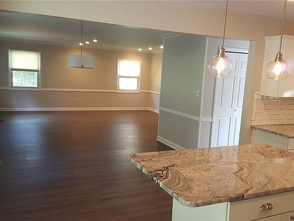 This 1950 square-foot 3bd/2ba extended ranch sits on a quiet street lined with sidewalks, mature trees and has just been renovated top to bottom! A newly installed center island with seating is the focal point for this ranch which features an open floor plan, beautiful crown moldings and chair railing throughout the living and dining rooms. The newly installed kitchen features white shaker cabinets, subway tile backsplash, custom granite countertops, and stainless steel Samsung appliances. Off the kitchen is a sunroom addition with pocket doors, vaulted ceiling, & double slider access to the fully fenced backyard with paver patio. 2 full baths have been updated. Furnace/AC 1 yr old, windows/siding recently updated. Home warranty included.