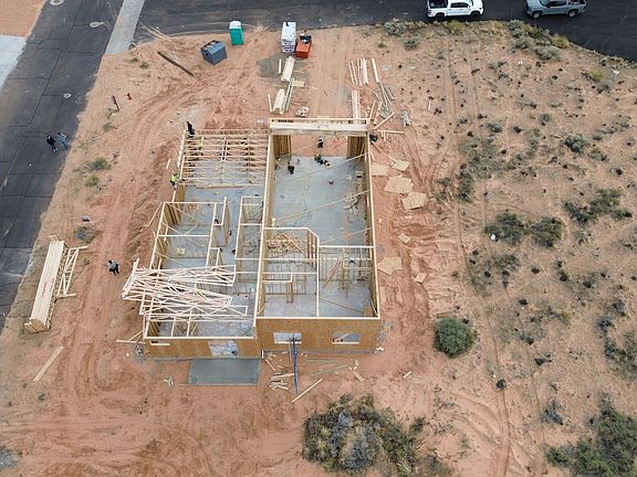 Labyrinth floor plan by Lake Powell Homes. Est completion date January 2026. This stunning home features a huge RV 24' x 45' garage, with 12-foot garage doors, ideal for lake toy enthusiasts. The sophisticated open-concept design maximizes space, showcasing wood tile flooring that flows seamlessly through the expansive living area and gourmet kitchen. The kitchen is outfitted with top-of-the-line stainless steel appliances, quartz countertops, and modern cabinetry. 12' sliding glass door open to a covered front patio, offering breathtaking scenic views with indoor-outdoor living. The master suite is a private retreat, featuring a generous walk-in closet, 2 sinks and a frameless glass walk-in shower. 4 spacious guest bedrooms and 2 full guest bathrooms for family or visitors.