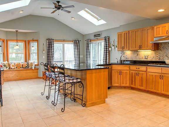 - Features: Skylight, Ceiling Fan(s), Vaulted Ceiling(s), Flooring - Stone/Ceramic Tile, Window(s) - Bay/Bow/Box, Window(s) - Picture, Dining Area, Countertops - Stone/Granite/Solid, Breakfast Bar / Nook, Cabinets - Upgraded, Deck - Exterior, Exterior Access, Open Floorplan, Recessed Lighting, Remodeled, Slider, Stainless Steel Appliances, Gas Stove, Peninsula
