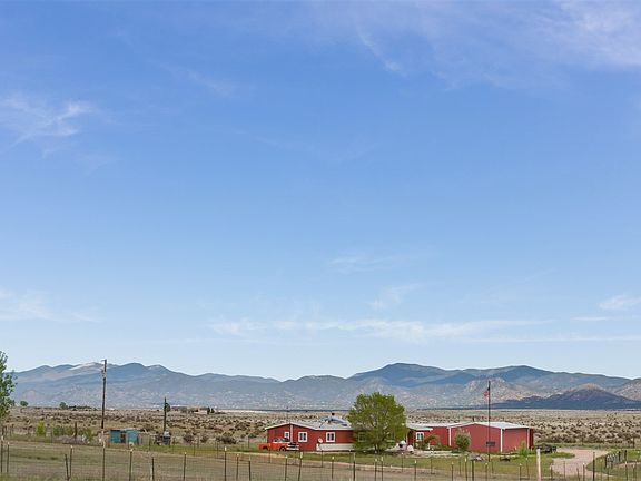 Great possibilities for this property! Situated on 2.38 acres with incredible views of the Sangre de Cristo and Ortiz Mountains. Great for a family! Five bedrooms, large garage with high ceilings. Separate studio or workshop on the property. Tile floors, wood stove, private well. Horses are allowed too.