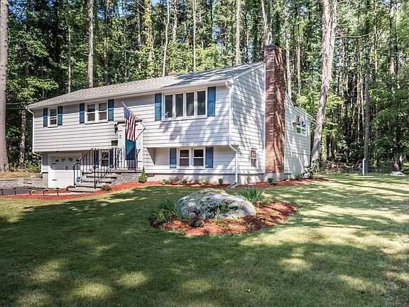 Welcome home to this beautiful newly renovated home in one of North Reading's most desirable neighborhoods and in the much sought after LD Batchelder school district. Spacious three-bedroom home on a beautiful level lot featuring new kitchen with trendy white shaker cabinets, stainless steel appliances, granite countertops, and lovely breakfast bar. Open-concept living/dining room with gleaming hardwood floors, large sunroom, three generous bedrooms and an updated bathroom complete the main living level. The lower level boasts a large family room with fireplace, a stunning three-quarter bathroom, a roomy office, as well as a laundry area and access to the one-car garage. Many recent updates including newer septic system, roof, heating system, water tank, driveway, and front stairs. Nothing to do except unpack and enjoy your new home!