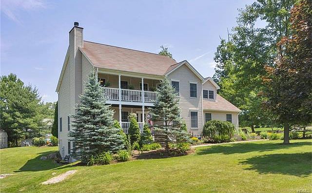 Greenway of Woodbury. Meticulously maintained-offering 4/5 bedrooms, 4000 sq. ft. & full finished basement. Unique design offers full front porch with private balcony off the Master bedroom. A large back deck overlooks the pool. Ideal for entertaining. Welcoming entry foyer leads to formal dining room, living room with wood burning fireplace & office. Large eat-in kitchen features cherry cabinets, Corian & appliances GE profile refrigerator & dishwasher. kitchen has sliding doors to deck, is open to large, vaulted family room. 1st floor laundry room & half bath. 2nd floor features large master suite w/walk-in closets, private balcony, large bathroom. 3 additional generously-sized bedrooms share 2nd full bath. Full finished basement boasts game room, guest area, full bath, storage/utility, opens to a beautifully landscaped 1-acre lot. Gorgeous variety of Evergreens & perennial plantings complete your private oasis. Hardwoods, ceramic tiles, Anderson windows throughout & 5 zone heating.