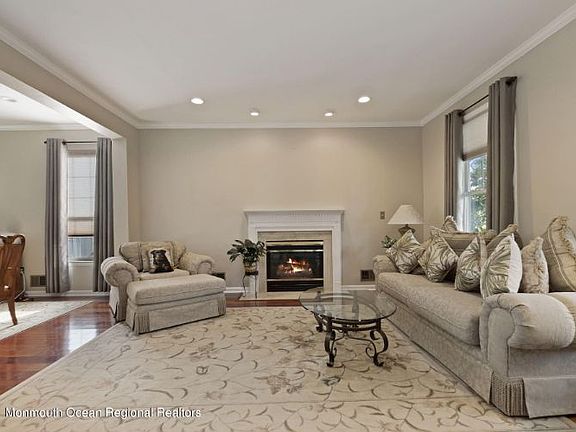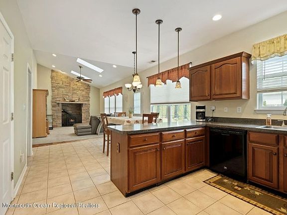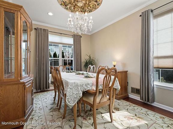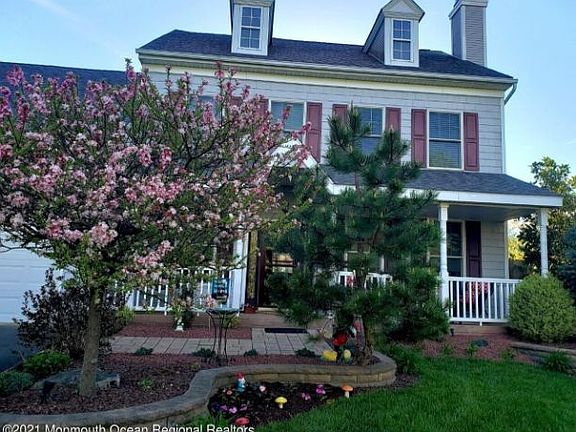 When you walk onto the large front porch, you will enter this lovely 3 bedroom, 2 1 2 bath home with beautiful Brazilian cherry floors. This home has a fireplace in the living room and a wood burning stove in the family room. The family room has a vaulted ceiling with skylights. The eat in kitchen has a ceramic floor, cherry cabinets, and a door which leads to the rear yard with a paver patio, and an above ground pool. Great home in a great development. Home is in Howell Township with a Freehold mailing address.