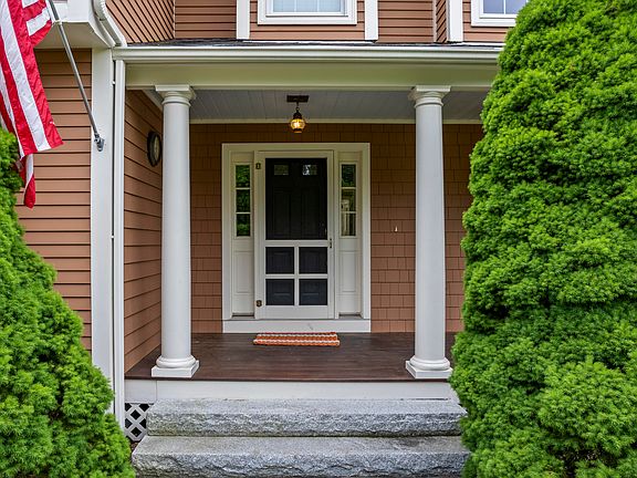 Welcome to 12 Tall Pines Way, surrounded by luscious landscaping, this 4 bedroom 2 1/2 bath home has much to offer! The front of the home is adorned with flower gardens lining the Traditional New England Blue Stone Walkway, and the expansive backyard boasts levels of stone walls, gorgeous plantings and natural rock outcroppings, creating a wonderful space to relax and entertain. Inside you'll find hardwood floors and carefully crafted details throughout. The chef's kitchen with stainless steel Viking appliances is highlighted by a beautiful combination of painted and cherry cabinetry and custom cement countertops. The dine-in kitchen is flooded with natural light from the adjacent sunroom enclave with oversized windows and skylights. The first floor also offers a private office, formal dining room, living room with gas fireplace, half bath, and a laundry room. The second level hosts the four bedrooms, including the primary bedroom with ensuite bath which features a soaking tub and double vanity with a cement countertop. The additional bedrooms are spacious with ample closet space and vaulted ceilings. They share a full bathroom, also with a double vanity and custom cement top. Completing this offering is the spacious two car garage, which allows for direct entry into the mudroom, and a lower level featuring a bonus room, large closet for storage, and walk out access to the stunning backyard.
