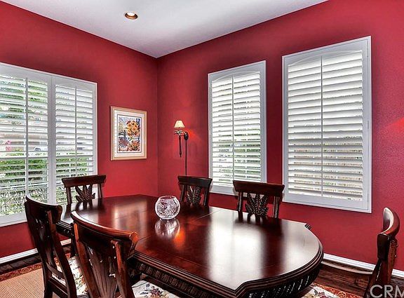 Wonderful Wyeth residence with 5 Bedrooms plus separate bonus room on an expansive lot with porte-cochere covered driveway, located on a double cul-de-sac street in the Oak Knoll Village of Ladera Ranch. Carefully selected interior finishes including gorgeous distressed hardwood flooring throughout first floor, stairway and upstairs hallway, custom built-ins and custom window treatments including plantation shutters & woven shades. Gourmet kitchen is highlighted by a substantial kitchen island and features granite counters, stainless steel appliances including Sub Zero refrigerator, reverse osmosis water system, oversized walk-in pantry with butlers pantry & breakfast nook with additional cabinetry. Adjacent generous family room has fireplace, ceiling fan & custom built-ins. This popular floor plan also features a separate living room with fireplace, formal dining room and private main floor bedroom with full bath. Romantic master suite has balcony and features custom paint, fireplace, plantation shutters, ceiling fan & sitting area with built-in bookshelves. Enjoy this tranquil, private backyard with covered & brick patio, fire pit and lush landscaping. Close to the Oak Knoll Clubhouse with two pools & water play park and close to award-winning schools.