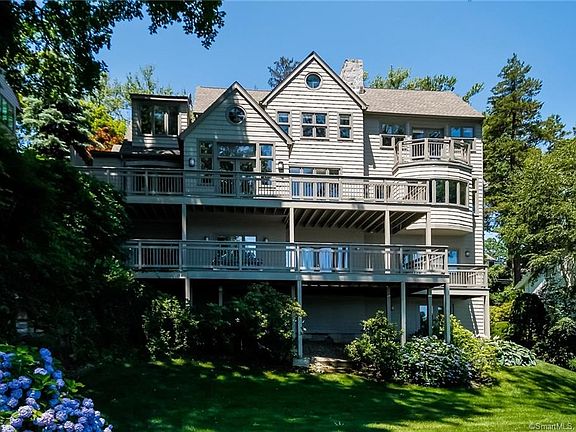 Turnkey, hassle free living in private and sophisticated Thomas Place in Rowayton. This direct waterfront home has four levels w. formal LR, sitting room, dining and kitchen on the main level, all of which open to a spacious, "perfect for entertaining" deck overlooking Wilson Cove w. views of Sheffield Island, the Norwalk Islands & LIS beyond. The master suite is located on the upper level w. vaulted ceiling, fireplace & balcony, his & her baths, dressing area and private office/den. There are two additional en suite bedrooms + family room w. gas fplc and a second deck on the lower level. The ground floor has a mirrored exercise room, plus additional space for storage, office/studio, etc. as well as mechanical and exterior access. The Thomas Place location is superb, providing easy and safe access to Wilson Cove from its private boathouse and floating docks. And, the open design of the boathouse w. fireplace is perfect for summer entertaining. Walk or pedal to town, Bayley Beach, the Rowayton Library, restaurants, Friday's Farmer's Market and more. Downtown Rowayton is active and charming and wonderfully waterfront! Unique opportunity to own one of the most desirable homes with some of the best views in Thomas Place. Its location is quite private with actual access to Wilson Cove for kayaking, paddle boarding, etc. Note the gas grill hook-up on the deck off the kitchen; wired for sound/speakers in the ceilings and the warming drawer in the kitchen. Please also note that the photos of some rooms reflect previous staging which has since changed.