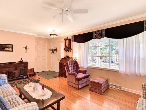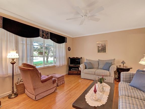 This well maintained home set against a backdrop of privacy is an absolute must see! With so much to offer from a spacious & bright kit to the beautiful hrdwd flrs thru out. The eat in Kit, DR & LR all lend themselves for entertaining with additional easy access to the large deck. A brick fireplace is flanked by built-ins in the dining room that opens to the kitchen with ctr island and bar stools for that casual meal.The W/O basement runs the footprint of the home and is set up for a number of scenarios with its own rec room, storage room, and spacious area for the hobbyist. Relax in the backyard oasis, w deck nestled in nature.High efficiency furnace, central vac, newer oil tank. Large pole barn is ideal for the car enthusiast or hobbyist.