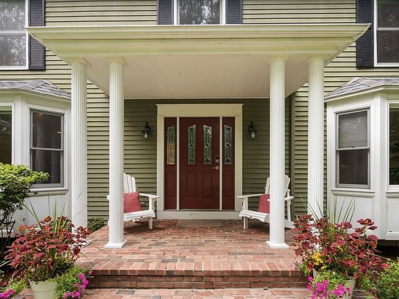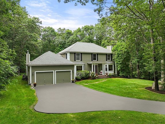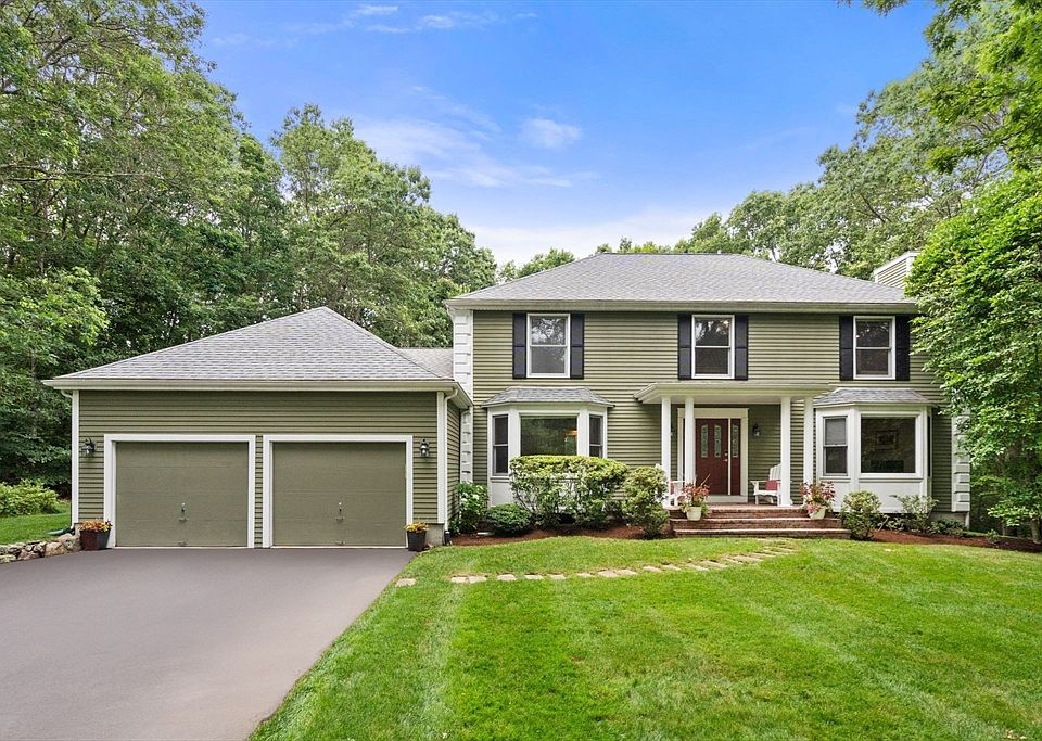 Absolute STAND-OUT CUSTOM COLONIAL in PREMIER Tanglewood Estates exudes warmth & elegance. Dramatic formal & casual spaces include an OPEN-CONCEPT CHEF’S KITCHEN, large dining area, and cathedral-ceiling’d fire-placed family room with WALL OF WINDOWS. 1st floor offers gracious formal dining room, fire-placed living room with french doors leading to sun-lit first floor office, a three season sunroom with access to the DECK, PATIO w/ HOT TUB and luxurious PRIVATE BACKYARD, plus half bath. Upstairs: stunning OWNERS SUITE with walk-in closet & remodeled bath, laundry, plus 3 spacious bedrooms & full bath. Lower level is exceptional with GAME ROOM, GYM, FAMILY ROOM, and FULL BATH. Exterior includes deck, patio, hot tub, lush lawn & privacy, PERFECT FOR ENTERTAINING! Home abuts conservation land! Easy access to Borderland trails. METICULOUSLY MAINTAINED with GORGEOUS CURB APPEAL. For the discerning buyer seeking a timeless classic in an ideal neighborhood.