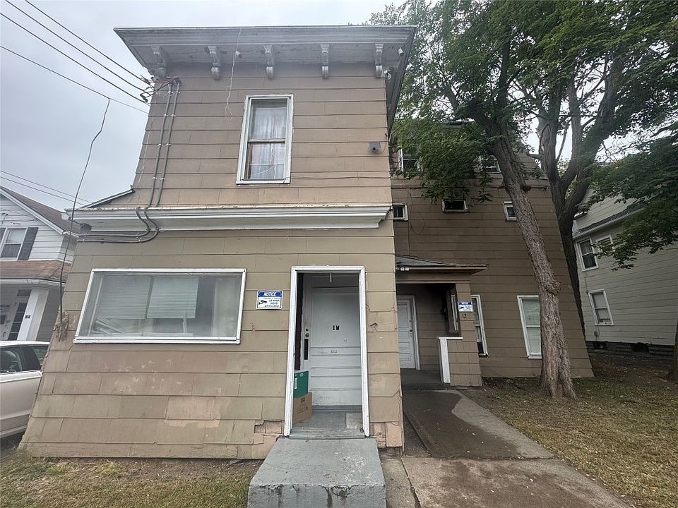Four unit/multi-use property sits on a HUGE lot with so much room for ideas to come to life. Whether you’re looking to invest, create student housing, or owner occupy. 2 units occupied. There’s plenty of parking, large lot size/backyard, and/or even room to expand (check zoning). Part of the roof on the 3rd floor — it’s wearing a blue tarp like a superhero cape until its makeover day arrives. This will be a short sale, subject to bank approval. A great opportunity for the right buyer with a little patience and an open mind — the potential here is worth the wait!