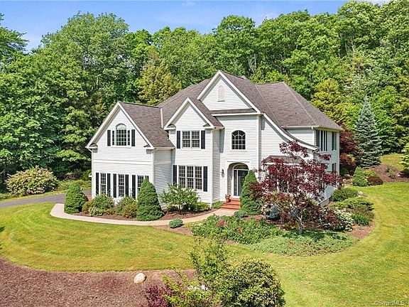 This Stunning Colonial is an architectural beauty Located in a premier neighborhood this impeccably maintained home is situated on 2.12 professionally landscaped peaceful acres with beautiful westerly views. From the moment you enter, custom features & details overwhelm. The first floor offers a welcoming 2 story foyer leading to the office with french doors, living room and dining room, gourmet granite kitchen with cherry cabinetry, center island, double ovens, pantry closet opening to the fireplaced family room with slider to back deck overlooking the gorgeous grounds. The second floor has new hardwood floors in the bedrooms in 2017 and hosts the sumptuous primary suite with 2 walk-in closets, and a wonderful full bath with double sinks, jacuzzi and shower, 3 additional great sized bedroom, main full bath and the laundry room. Some of the special features and updates are front and back staircases, newer roof, central air, central vac, newer dishwasher and refrigerator and a 3 car garage While West Granby treasures its quiet & quaint settings it is ideal to all major cities, highways & International airports. Enjoy hiking/biking trails, Mcleans Game Refuge, Enders State Forest, Lost Acres Vineyard, Lost Acres Orchard, Bushy Hill Orchard, Holcomb Farm, Delicious restaurants, YMCA, Shopping, & so much more along with a close-knit community setting.