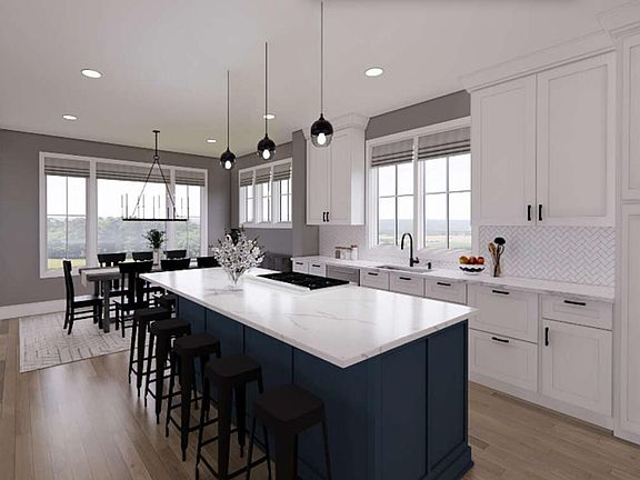 Vaulted ceilings elevate the state-of-the-art kitchen, great room, and primary bedroom suite, creating an airy and inviting atmosphere. The primary suite is a true retreat, featuring a sophisticated bathroom with a free-standing soaking tub, glass-enclosed shower, and a spacious walk-in closet.