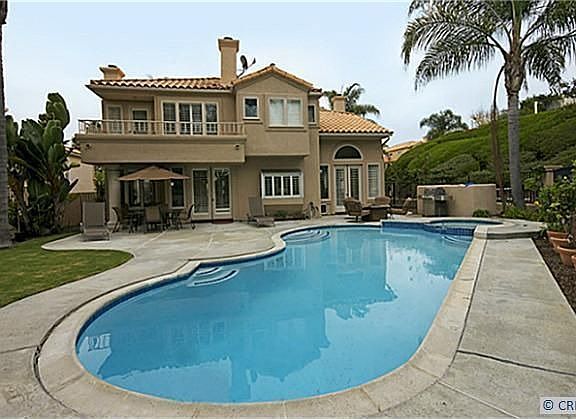 Gorgeous semi-custom Villa located in the Guard-Gated community of Monarch Beach. This is the largest model with a remodeled upstairs Excercise/Bonus room and Hardwood Flooring. This home is on a huge lot of over 14,000 sq ft complete with Pool and Spa. Peek Ocean View. A garden full of Fresh Divine Fruit Trees carefully Mastered by the homeowner. It backs to a lush Park with peek Sunset and Ocean Views. There are 4 Additional spacious Bedrooms,all have their own private baths. One full bedroom and bath downstairs, currently used as office. Plantation Shutters throughout. The home features Mediterranean Style Columns, Travertine flooring. Exquisite cathedral ceilings. A gourmet Kitchen with views of the lovely Pool, Spa and lush garden outside. The Master Suite has its own private retreat and balcony. Surrounded by The Links Golf Course, just a short walk to Salt Creek Beach and Dana Point Harbor.