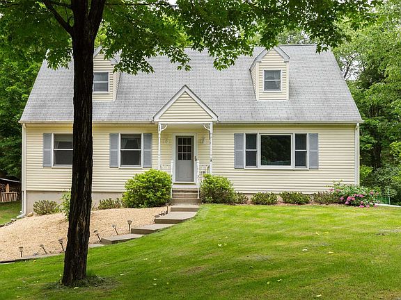 Charming country Cape tucked away in a pretty private setting. This 3 bedroom home has been lovingly maintained by original owners. Located at the end of toddy lane and long winding driveway offers total seclusion. Spacious and bright living room with gas fireplace, country kitchen with loads of cabinets and tiled back splash. Two generous sized bedrooms and full bath on main level. Unbelievable space upstairs includes large bedroom, full bath and office/den. Detached barn/garage is an added bonus along with shed for extra storage. Great location! Minutes to Route 9, shopping, restaurants and train. No showings on Sunday.