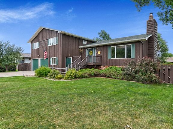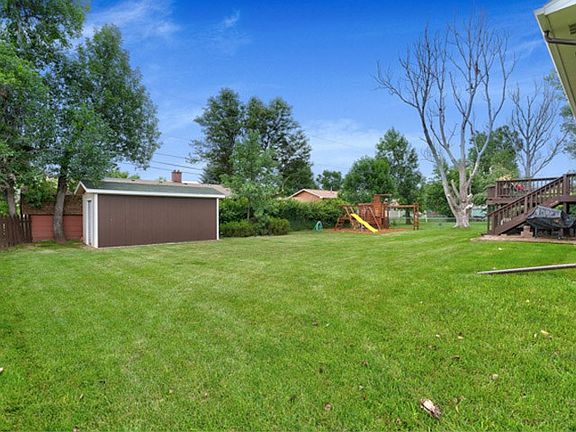 Lovely neighborhood with mature trees, large yard with privacy fence, large storage shed, play area, quiet cul-de-sac street, minutes to downtown and yet a country feel make this home desireable for the home buyer. 4 bedroom, 2 bath with large living area with gas fireplace, expandable dining area, quartz countertops, plenty of cupboard space and functional kitchen for the cook. The beautiful rock fireplace adorns the lower living area which is comfortable and cozy. Three bedrooms along with bathroom on upper level, lower level along with living area, bathroom and expansive laundry /mud room area that is accessed through the garage has numerous cupboards for winter coats, laundry items and misc. The basement level accomodates another large living area with woodburner stove, cozy and comfortable along with a 4th bedroom. Plenty of room for privacy and family fun!!