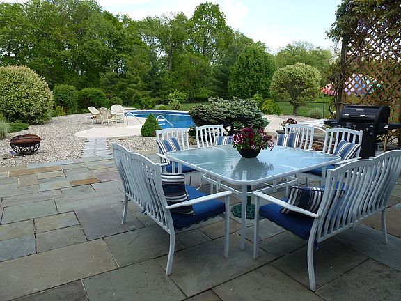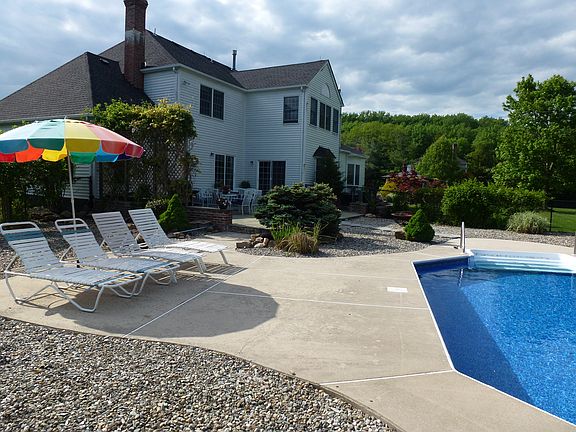 Exceptional value in awesome community. Handsome brick front colonial with manicured grounds leads to the dramatic entry foyer with butterfly staircase. Illuminated by natural light, the formal living and dining rooms will welcome your guests. Kitchen with generous center island opens to the breakfast room with views of the lovely gardens with easy access to the outdoors ~ overlooking the custom patios, in ground pool, carefully planned landscaping and natural woodlands setting. Family room with handsome fireplace leads to the sunroom with seemingly endless windows for natural light. First floor includes an office or 5th bedroom with full bath and separate entry access for in-law or nanny suite. Master suite with double door entry is sunfilled with a wall of windows embracing the sitting area, customized dressing area with walk-in closets and lavish bath. Three additional bedrooms and full bath complete the 2nd floor. Professionally finished basement for additional living space, plus super storage. Convenient storage sheds, 3 car garage and abundance of closets throughout too. Close to major shopping, Route 1, plus fine dining and culture with downtown Princeton at your doorstep! Princeton mailing address.
