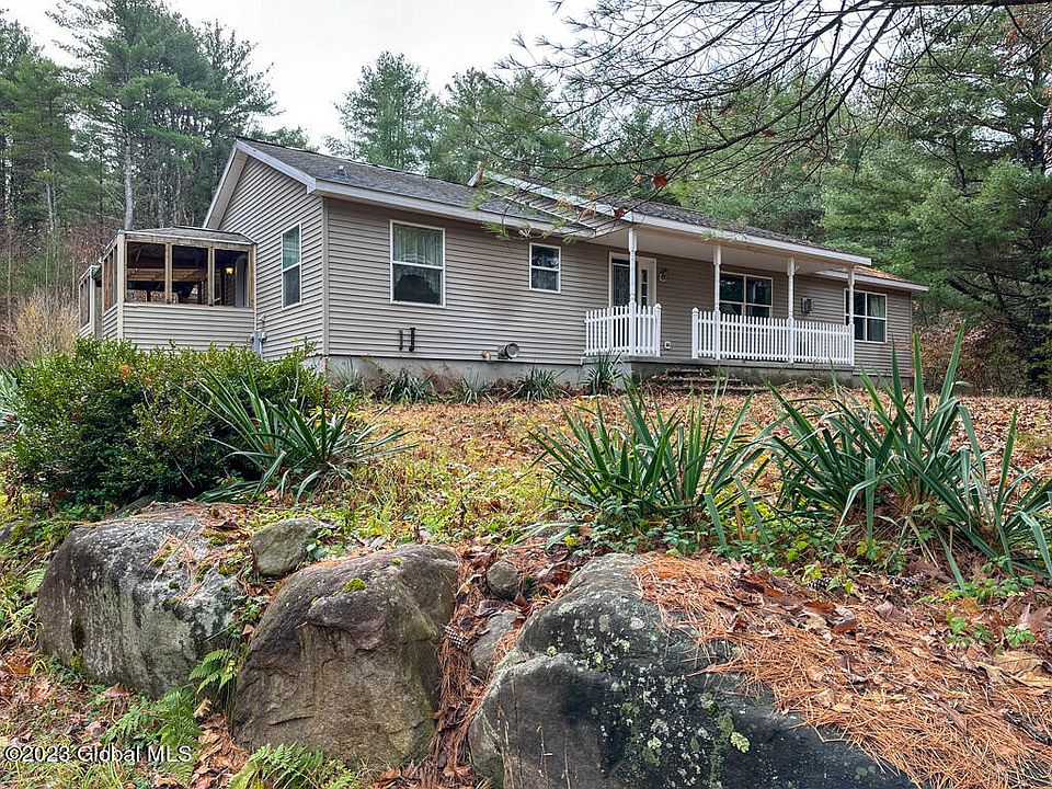 Opportunity knocks! Nestled in a private setting yet close to everything! A little TLC and loving will make this home! Living room with gas fireplace, dining room with tray ceiling and sliders to the south facing sun room. Primary bedroom with bath (glass blocks!) and WIC. 2 bedrooms share a bath. Country kitchen with oak cabinets and granite counters plus room for a breakfast nook. Covered front porch. Full basement with interior entry.- quilting room and a work shop. Detached Barn type garage with covered parking for three cars. Separate bay in garage is a great workshop!