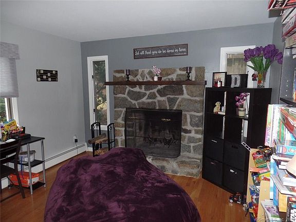 Move right in to this expanded Cape. This lovely 3 bedroom 1 and 1/2 bath home situated on a quiet cul-de-sac. It has hardwood floors through-out, central air and a new security system. The family room features a beautiful wood burning fireplace and bay window. Eat-in Kitchen is bright with stainless steel Samsung refrigerator. Dining Room is spacious and bright with sliding door to wrap-a-round deck and private back yard. Updated 1/2 bath finishes up the first floor. Upstairs you will find two bedrooms with lots of storage and a large Master Bedroom and an updated bath. The lower level is large enough for an office or play/recreational space. Commuters delight, close to Rt 8, Rt. 34 , and Rt. 15 connector to 95.