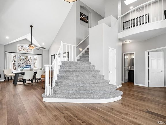 Welcome to this beautiful 5-bedroom, 4-bathroom home nestled in the highly sought-after Ken Caryl Valley of Littleton, Colorado. Perfectly blending modern luxury with the beauty of nature, this property offers an exceptional living experience with breathtaking foothill views and top-tier community amenities. Step inside to find a spacious and inviting main floor, featuring soaring ceilings and large windows that flood the space with natural light. The gorgeous remodeled kitchen is a chef’s dream, boasting abundant cabinetry, quartz countertops, new lighting, and a massive island – ideal for meal prep or entertaining guests. The open-concept design effortlessly flows into the dining and living areas, where you can relax by the cozy fireplace and take in the stunning views of the surrounding landscape. A standout feature of this home is the spacious main floor primary bedroom suite, offering a private retreat with a luxurious en-suite bathroom. Whether you're unwinding in the spa-like bath or enjoying your own quiet space, this bedroom is an oasis of comfort and style. The walk-out, finished basement provides even more versatile living space, complete with an oversized bedroom and full bathroom. Whether you’re looking to set up a game room, home gym, or theater space, this expansive area can be customized to suit your lifestyle needs. Step outside to your own private outdoor sanctuary – with a pergola-covered patio, gas fireplace, and plenty of room for entertaining in a peaceful setting that lets you fully appreciate the Colorado scenery. Whether you're enjoying a morning coffee or hosting friends for an evening barbecue, this outdoor space is perfect for every occasion.