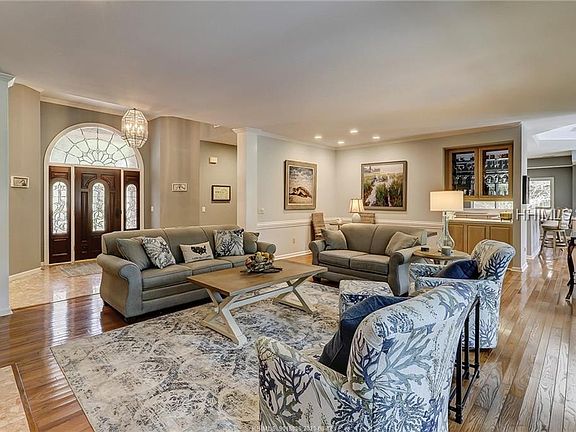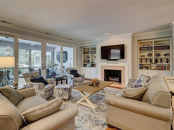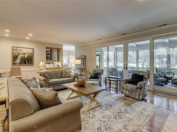 With a spectacular (heated) backyard swimming pool and recently constructed (oversized) screen porch (with TV), this home offers the remarkable outdoor living opportunities that you are longing for. And with professionally installed outdoor sound, one can relax and enjoy their favorite music while lounging by the pool. Located on a quiet residential street, with long golf views stretching down to the 8th green, and wonderfully situated near Harbour Town. Recent improvements include new sliders & porch, resurfaced pool, plumbing, shiplap, new laundry room, and remarkable bathroom renovations. Magazine cover quality!