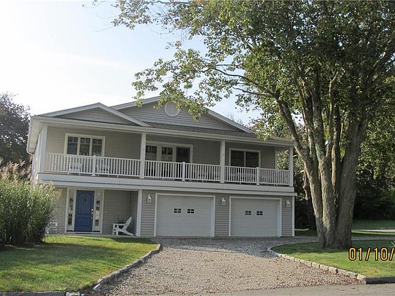 Peace, Privacy and Water Views! In the quiet south end of Black Point Beach Club, a rare "upside-down house- Kitchen, Living room, Master bedroom suite and additional bedroom all upstairs- allowing for soft breezes and views of the Niantic Bay. Master bedroom suite includes an adjoining full bath, his and her full-size closets and a sunny balcony with bay views. Another second floor, full bath off the hallway, and full-size bedroom. An open floor plan with hardwood floors throughout, a large gourmet kitchen (with more water views) and dining area off the living room. Sliders to a beautiful second floor outdoor deck. Downstairs on the main level, an open family/great room, two more bedrooms, full bath and laundry. Newly installed wrap-around patio, gas firepit and privacy gardens provide additional outside living space. Just steps to the beach, this recently renovated year-round home is comfortable in every season and requires minimal maintenance. Come join the fun at this private beach with boating,kayaking,tennis and use of clubhouse. Drive your golf cart up to our beach gourmet market for coffee or lunch. Easy modifications to make handicap accessible.