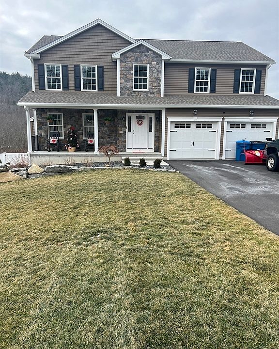 NEWER CONSTRUCTION!!! This beautiful home features a large open floor plan w/an abundance of natural light throughout. The kitchen is a chef's dream, equipped w/top-of-the-line SS appliances, a large center island w/stunning quartz counter tops & a huge pantry. The kitchen flows seamlessly into the living room, which features a cozy gas fireplace w/a beautiful mantel and gleaming wood floors. Upstairs, you'll find four spacious bedrooms, each w/plenty of closet space and a shared large bathroom w/double vanity and quartz counter tops. The primary bedroom is a private retreat, w/an en-suite bathroom featuring an extra large tiled shower, and double vanity w/quartz counter tops. There is finished walkout Basement that could be a workout room, family room, office, or whatever you desire.This home is located across from Flynt Quarry walking trails, has beautiful mountain views, surrounded by conservation land with totally fenced in rear yard and is less than 10 minutes to the MA Pike.