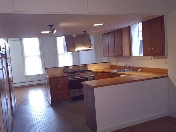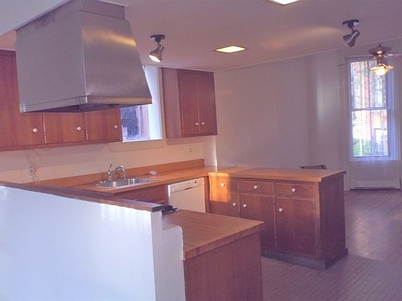 Available now. Prime South End location on this freshly painted, sunny 2 bedroom lower duplex with 3 exposures, deck and private yard. Heat/hot water/gas cooking included in rent. Main level consists of a separate dining room, large kitchen, living room with high tin ceilings, two ceiling fans, hardwood floors, and a private deck. Kitchen features Fisher-Paykel gas range, stainless hood, Bosch dishwasher, lots of cabinet space, butcher block countertops, and tile floors. Lower level consists of two large bedrooms (one with ornamental fireplace), new carpet and large closets, full tile bath, washer/dryer, and access to private back yard. Central air through mini-split system. 1st Month/One Month Security/One Month Broker Fee due at lease signing.