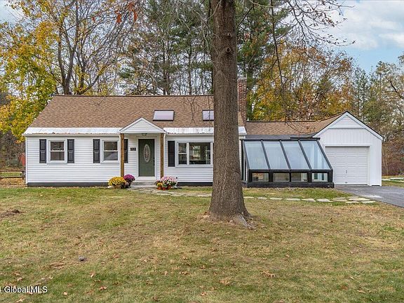 This stunningly remodeled 3 bedroom, 2 bathroom cape is ready for you to move in and call home, and ideally located on quiet dead end street in the heart of Burnt Hills! Basically new EVERYTHING including a gorgeous, expansive chefs kitchen, new bathrooms, flooring, electrical and siding Enjoy all the sunlight with vaulted ceilings, skylights, plenty of windows and a sunroom which could be used as an office, playroom and/or perfect home for your plants! A custom floating staircase leads you to your private primary suite on the second floor.