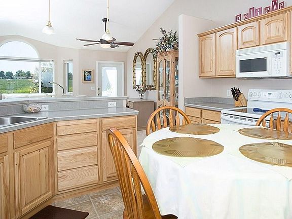 Charming well cared for 3 bed, 3 full bath custom home you will want to show. Light and bright, this open floor plan has big windows along back of living room allowing for great views. Basement is finished with daylight windows, 2 bedrooms, full bath, mechanical room, storage, large open rooms - could be family room, game room or?? Beautifully landscaped, delightful easy care large trex deck to enjoy stunning sunsets.