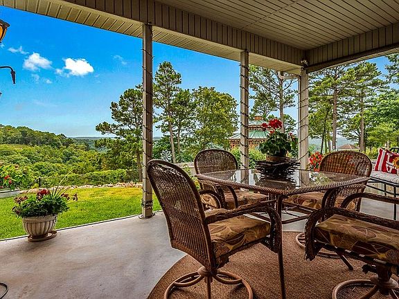 Living in the Ozarks on level ground with an outstanding Ozark Vista can't get better than this home's location in The Bluffs; HI newest development. Nearby shopping, medical, golf, country club, dining, marina, pools, walking trails and more. This elegant turnkey home is one level living with low maintenance. Sit on your covered 12.9 x 16 veranda and soak in the Ozark Mtns. as far as the eye can see. Enjoy new plank flooring and large walk-in glass showers. Sitting area off Master Suite with electric fireplace. Electric Fireplace in LR sets a cozy wintertime mood. All lg brms have additional places to recline and relax. Property has been professionally landscaped w/water features and a shaded gazebo. 3 Car Garage omits driveway parking. 3rd full bath shares the laundry room for making an easy yard work clean up area. Custom Crafted Amish cabinetry makes this large kitchen a great place for family gatherings. Shopping is close at hand for last minute final touches to a perfect patio meal. Appt only.
