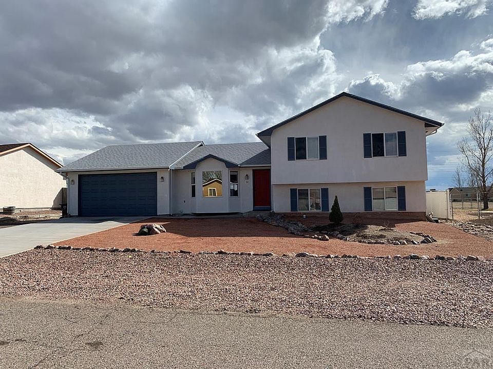 Super clean tri-level with custom kitchen, newer appliances, quartz counter tops & cabinetry with pull out drawers. The laminate is all newer, 2 year old roof, furnace & central air. 3 full baths, deck off master & 15 x 30 covered patio are some of the benefits to this home. It also is Xeriscaped, has RV parking & solar panels.