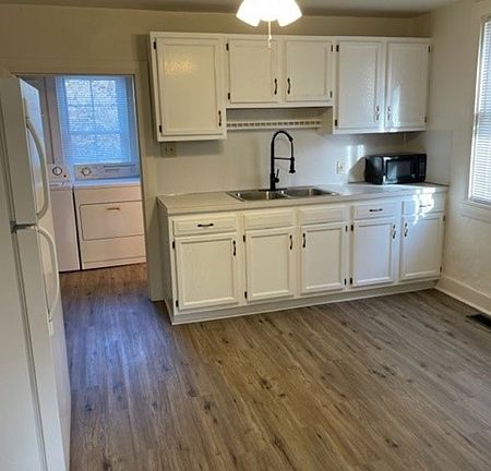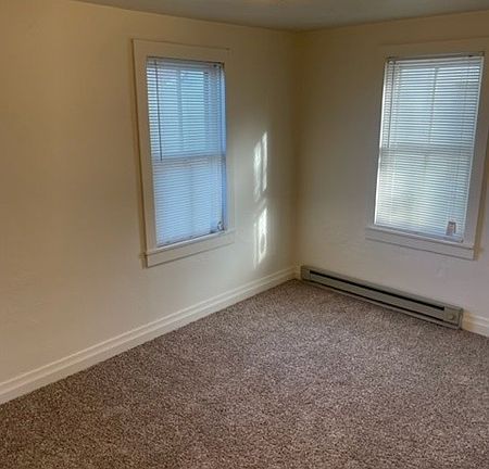 2 bedroom 1 bath house with living room, kitchen and full bathroom. Laundry room with washer and dryer (courtesy only) on the 1st floor. Unfinished basement and attic for storage. Large back yard with off street parking area in the rear. Tenant is responsible for lawn care, weeding and snow removal. Small pet negotiable. No smoking indoors.