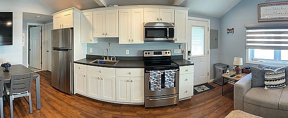 TURN KEY AND 1 BLOCK FROM A STUNNING PRIVATE BEACH! A 2 bed and 1 bathroom year around home completely renovated with brand new windows, shaker vinyl siding, gray pavers on the entire property, outdoor shower, split unit in all rooms for heating and AC, new appliances (full size washer and dryer, refrigerator). The bathroom has a majestic feel of beach colored marble floors and a marble shower with a glass door. Walking distance to everything. Enjoy a cup of coffee or tea during sunrise or sunset. You can also walk alongside the bay or on the boardwalk. Ample parking available for home owners on The Lane.