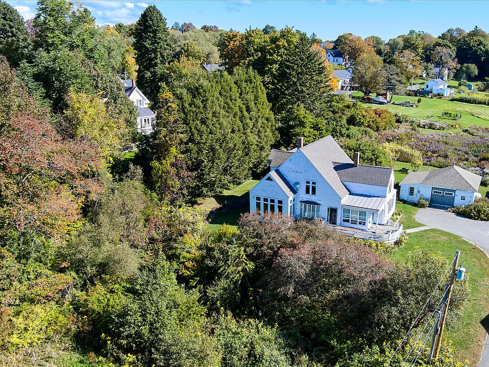 Nestled on a private court in the heart of Thomaston, this home borders conservation fields with views of the St. George River. Mature landscaping, natural streams, and prosperous fruit trees provide idyllic scenery in all seasons.