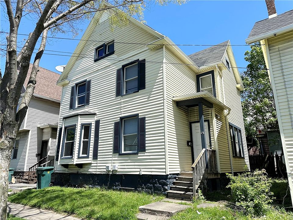 Investment opportunity awaits in this sizeable side-by-side duplex in Rochester's Lyell-Otis neighborhood. Each unit features 3 beds and a spacious layout with formal dining rooms, with one featuring 1 full-bath and the other offering 1.5 baths. Low maintenance vinyl siding as well as vinyl windows throughout! One unit sits vacant making any potential updates easy to get done quickly, while the other is currently on a month-to-month agreement for $900/mo. Ideal for investors seeking value-add potential or owner-occupiers looking to capitalize on rental income. The units are mirror images of each other, including their own walk-up attic space as well as separate basements with laundry hookups. Whether you are looking for a value-add opportunity, the chance for owner-occupancy, or both, this is the investment property for you!