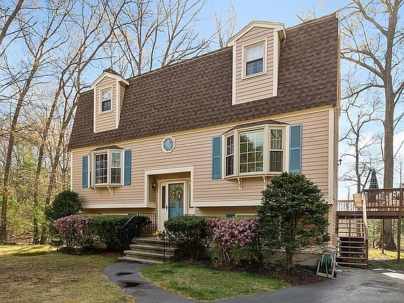 Serene Surroundings! This beautiful 3 Bedroom, 2 Bathroom home sits on almost ¾ acres with wooded back yard, conservation land, beautiful views, and located on Cul-de-sac. Have your morning coffee on your spacious deck and take in the beautiful nature. Inside you will find a sun splashed sprawling living room featuring stone fireplace, recessed lighting, bay window, and French door slider to the back deck. Kitchen offers dining area, access to the deck, granite countertops, and stainless steel appliances. Formal Dining Room with bay window and hardwood floors - great place for entertaining! Moving upstairs we have an expansive master suite boasting wall to wall carpet. 2 additional good-sized bedrooms with ample closet space completes level 2. Lower Level offers Family Room with beautiful stone fireplace and wet bar, laundry, and storage space.