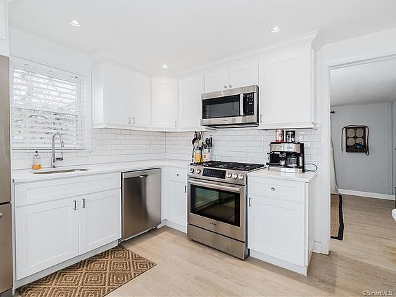 Welcome home! This 3BR/2BA home is the total package, fully updated throughout with a finished lower level and expansive fenced in yard, all within walking distance to town and train. Expect features such as whitewash hardwood floors throughout, LED recessed lighting, trendy lighting and color palette, high end kitchen and bathroom upgrades including custom vanities, luxe plumbing fixtures, quartz counters and stainless steel Bosch appliance package. The main level offers an open floor plan with living room, dining room, eat-in kitchen with breakfast bar, and FIRST FLOOR BEDROOM with access to a beautifully updated full bathroom. Upstairs find two additional bedrooms and a remodeled bath with subway tiled shower and frameless glass surround. The lower level is the perfect bonus space with wall to wall carpeting and access to the unfinished storage space and laundry room (washer and dryer included). The wow factor is without a doubt the outdoor entertaining space. A favorite for intimate sunsets and large gatherings alike, the deck is perfect for grilling, and leads down to the fully fenced rear yard, wonderfully private and uncommonly large with protected marshland beyond. Walk to the best of Fairfield! The marsh, running trails, beach, town, and train. FURRY FRIENDS WELCOME, pets accepted on a case by case basis. Potential to have flex terms, academic year, potentially furnished at an additional cost with acceptable terms.