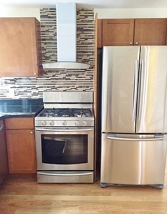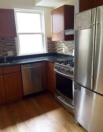 Modern kitchen in this spacious two bed, one bath apartment. The unit has been recently renovated and has a huge deck for you to relax and enjoy. This unit is on second floor and has gas heat, gleaming hardwood floors and new kitchen and appliances. Updates to the bath as well. Porch and shared yard, laundry in the basement. September move in date. Very close to Forest Hills.