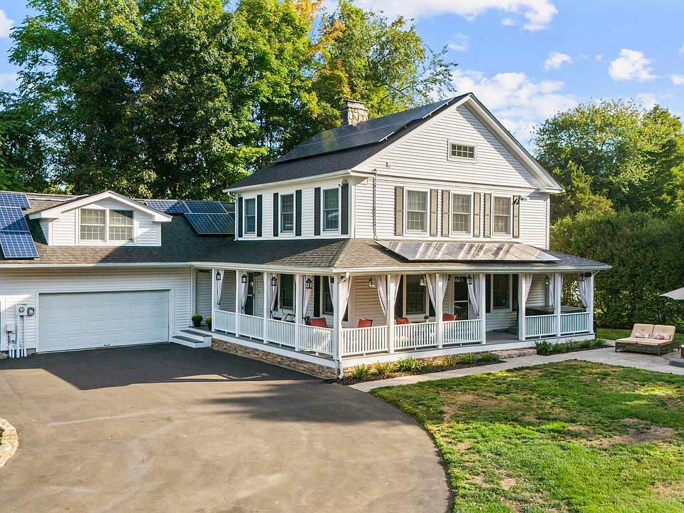 Nestled between the desirable neighborhoods of Stony Creek & Pine Orchard, 12 Wellesley Drive, this property is unlike anything you've seen-w/its beauty of post & beam construction, modern amenities & architectural character throughout, it's a home that simply cannot be replicated. As you approach, you'll be impressed by the stone walls outlining the property & the long circular driveway. A wrap around covered front porch-complete w/ a porch swing & hot tub-invites you to enjoy your morning coffee & a "historic" 2-story detached barn, perfect for storage or a workshop. Inside, you will be wowed by the dramatic family room, where soaring cathedral ceilings meet exposed beams & a central wood beam. Walls of natural stone & Stony Creek granite blends rustic warmth w/timeless sophistication. Overlooking the main living area is a 2nd floor loft, ideal for a home office, rec room, or guest space. The eat in kitchen is open & inviting, flowing into the dining area & foyer with a striking beautiful stone fireplace. The oversized dining room includes a bonus office nook & access to the deck-perfect for entertaining. Also on the main level, you'll find a half bath & wide-plank hardwood floors. Upstairs, the spacious primary suite offers an en suite bath featuring dual sinks & a walk-in shower. 2 additional bedrooms share a full bathroom. A bonus: a finished attic offers 320 sq ft of heated space-ideal for a hobby space or quiet escape BRAND NEW ROOF ! The lower level includes a large, finished room, a separate laundry room & ample storage along w/ mechanical systems.