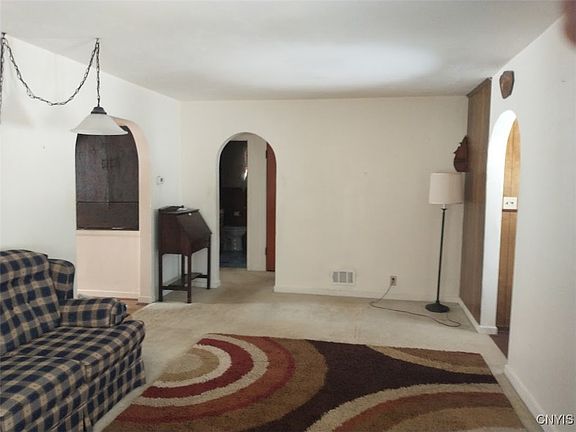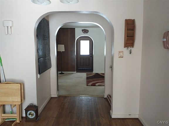 Good sized 3 bedroom 1 bath Capecod with loads of potential. 2 bedrooms on 1st floor, 1 currently set up as laundry room with spa tub. Hardwood floors on first floor. Big bedroom on second floor currently with partition and used as 2 bedrooms. Roof is 12 years old. Hot water tank is newer. Fully fenced back yard. 1 car detached garage, Home improvement grants available to income eligible buyers.