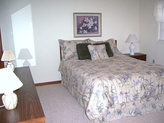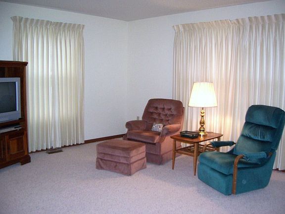 Sparkling clean! New carpet, kitchen with many cabinets and large dining room. Corner lot on a quiet cul-de-sac, nice front porch and deck. Garage is extra large with built-in cabinets.