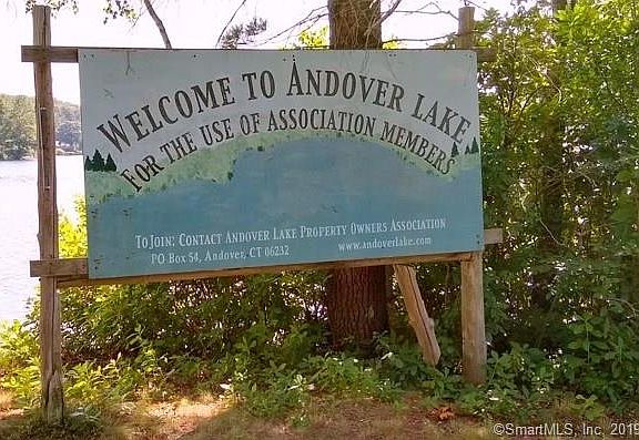 Delightful setting in the Andover Lake community (500' to the lake with seasonal views). Optional lake association membership gives access to the public beach and association amenities. This home features one level living. sunken living room has beautiful built-ins, a stone fireplace, hardwood floor and coiffured ceiling. Many recent updates including new roof, siding, Renewal by Anderson windows and slider, propane fireplace insert, outside fence and lovely landscaping.Solid mechanicals with updated furnace and electrical. This would make a great year round home or summer get-away. Currently designated by the town as a 1 bedroom, but foyer area with closet could Likely be converted to a 2nd bedroom.Sale is Subject to Probate Court Approval.