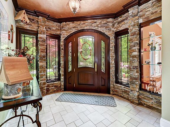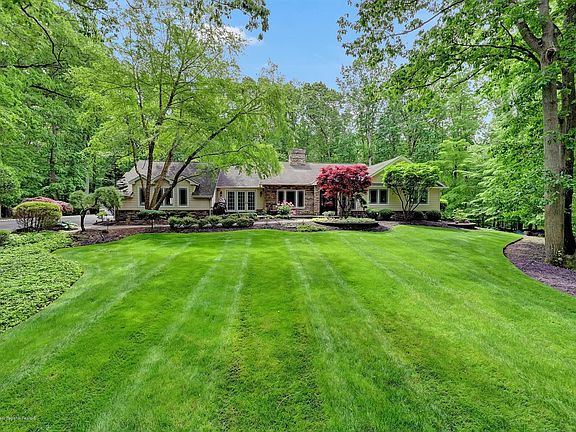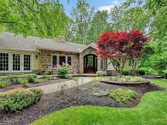 This sprawling Ranch will amaze w/its stunning architectural design & curb appeal. This home sits elevated w/gorg. private backdrop. Enjoy summer nights by WB outdoor FPL on your paver patio or off your Mstr Bdrm terrace. Upon entering the foyer you will be warmly invited by cultured stone, oversized windows, soaring ceilings & expanded rooms perfect for entertaining. Custom Kitchen was expanded w/ open floor plan to sunken sun room w/ WB FPl. Great Room w/ wall of windows & vaulted ceilings. Cozy FR w/ Gas FPL, custom built ins. Spacious. Inlaw suite directly off the kitchen includes 5th bedroom and LR perfect for guests . Expanded master bedroom w/sitting room w/sitting room, spa like bathroom, private terrace & WIC. W/O basement, 3 car det. garage, radiant heat and so much more