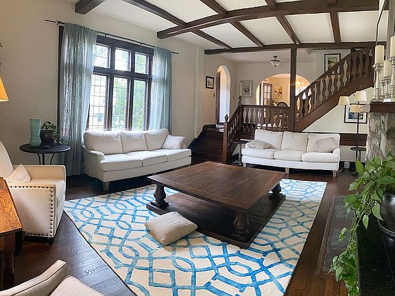 Move right into this charming updated sunny Tudor. This home boasts a stunning sunken living room with beamed 13ft ceilings. The formal dining room seats 8 comfortably with french doors leading to a screened porch. The tastefully renovated kitchen is a bright spacious room with stainless steel appliances. The breakfast room offers additional mud room space for easy entrance into the kitchen. The second floor has 3 nice size bedrooms with 2 updated bathrooms with sleek Carrera marble. The 3rd level with the 4th bedroom and half bath is ideal for guests, nanny or home office. This house is complete with a finished lower level enhanced with travertine stone and easy access from the garage. New landscaping, masonry, painting, 19 Anderson windows, hot water heater, ductless ac units and gas conversion add to the allure of this home. Located in the sought after Beech Hill neighborhood, it is a short walk to the village of Scarsdale and train. This home is not to be missed with LOW taxes.