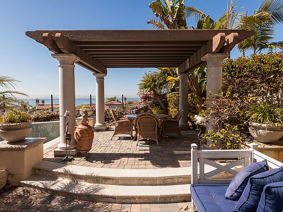 Fabulous coastline, Catalina and white water views from this stunning Crystal Cove Seabourne home featuring 5 spacious bedrooms(1 bedroom down) and 4 bathrooms. Enter through the spacious entry courtyard to this Mediterranean influenced home. Enjoy expansive views to the ocean from the large rear yard with inviting custom pool, spa, separate covered pergola, firepit and bbq area. Enjoy indoor/outdoor living with a spacious famly room with fireplace, gourmet kitchen with granite counters, viking range, sub-zero refrigerator and functional center cooking island. Entertain in the formal dining room with built-ins and the spacious living room with french doors to the inviting inner courtyard. Dramatically designed interior features including custom draperies, plantation shutters, custom painting and murals. Convenient large inside laundry area with sink and oversized 2 car garage with covered floors and abundant storage.