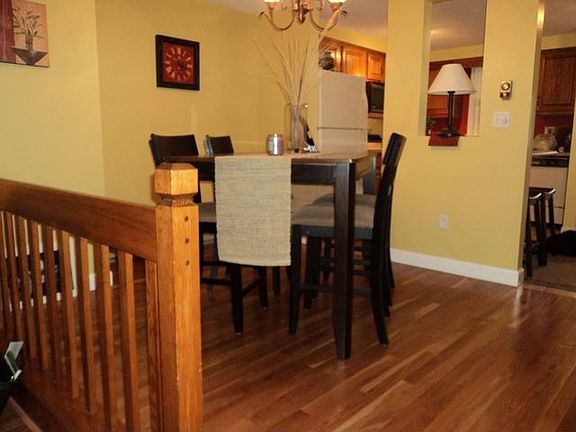 You will love how the kitchen has been opened up and the addition of an island sets this home apart. An extra-large sliding door to the back deck allows for cheerful light to beam in and show off the beautiful cherry hardwood floors that have been added to the dining room and the step-down living room. An attractive gas heat stove provides great warmth while adding to the aesthetics of the room. Updated bathrooms create a modern feel. It's time to sit back and relax - you're home!