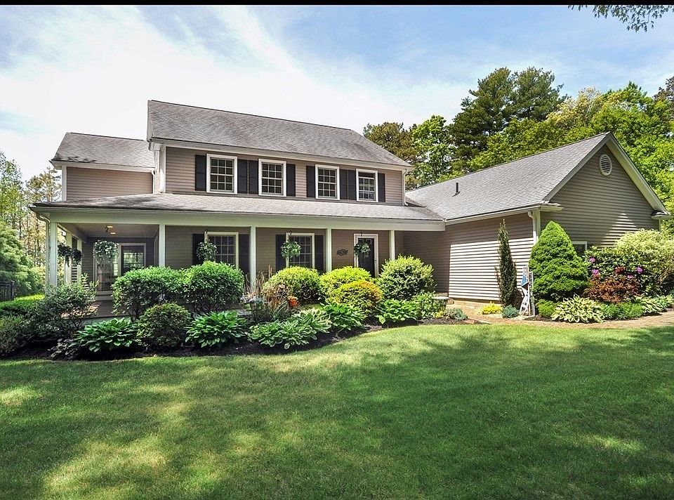 Summertime and the living is easy at 12 Whistlers Lane. This 4 bedroom Colonial is set on over 2 acres, with a private, fenced-in retreat lot at the end of a cul-de-sac. This home was made for outdoor living. Kick back on the farmers porch, enjoy dinner on the mahogany deck, or roast s'mores around the firepit. With an open floor plan, light pours into the family room with fireplace and cathedral ceilings. Adjoining kitchen with white cabinets, granite counters, dining area, stainless appliances, plus an 8 foot center island. Spacious living room and dining room are an entertainers delight! Powder room and laundry/mudroom complete the first floor. Venture upstairs and discover 4 spacious bedrooms, including an owner's suite with a luxurious bath and a second full bath. Walk-up third floor is full of possibility. Lower level offers ample storage space and is ready to be finished. 2 car garage, central air, storage shed, sprinkler system, gorgeous landscaping, central vac, security WOW!