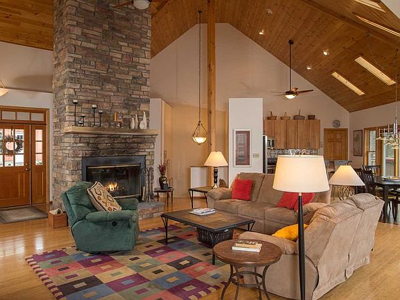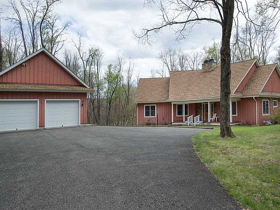 Contemporary Cape with lovely open floor plan, 20 foot cathedral ceiling, fireplace is set up for both wood and gas, 22x14 cedar deck overlooks in ground pool. Red birch kitchen cabinets, stainless appliances. Master suite w/whirlpool tub, plus 2 additional bedrooms. Central air. Lower level is walk out with sliding glass doors - there is a large family room with fireplace and additional game/multi-use room. 3.28 private acres. 5 minutes to Rhinebeck Village.